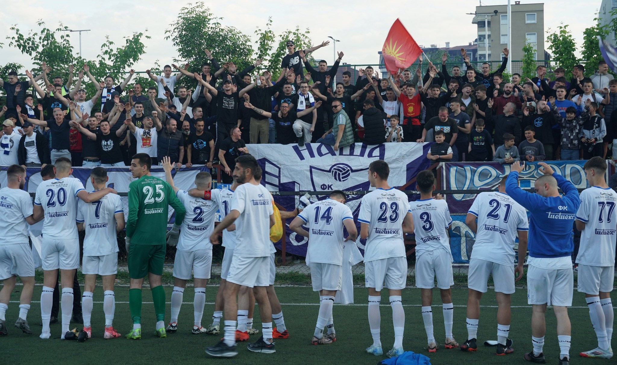 photo by FK Teteks Tetovo: the players celebrate the title with the fans